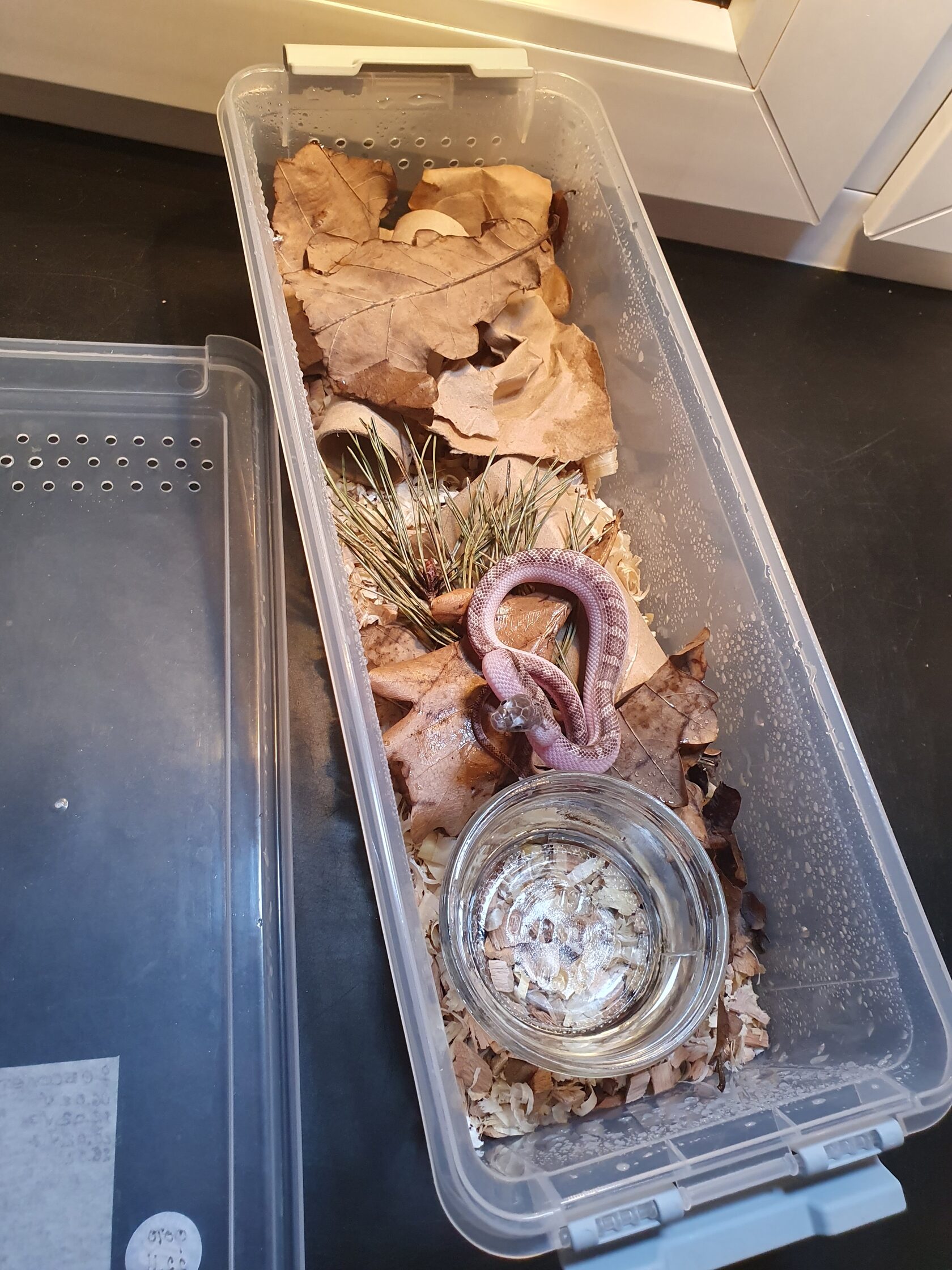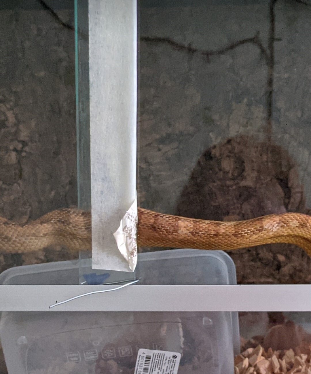 - Непрозрачные стенки дают змее ощущение защищённости (стеклянный «аквариум» со всех сторон часто вызывает стресс у молодняка).